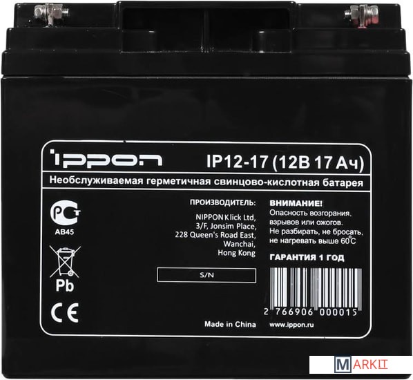 Markit » Аккумуляторы для ИБП » Аккумулятор для ИБП IPPON IP12-17 (12В/17 А·ч)