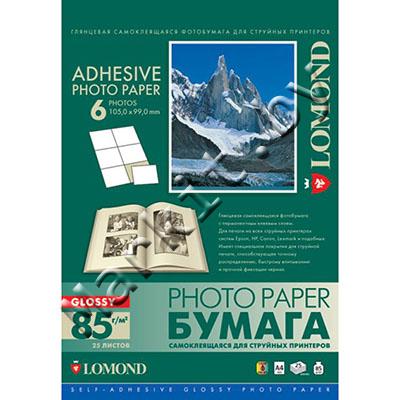 Фотонаклейка LOMOND A4, 6шт./л.(105мм x 99мм), ГЛЯНЦЕВАЯ (GLOSSY), 25 листов, односторонняя, для струйной печати (2410033) Код: 16987