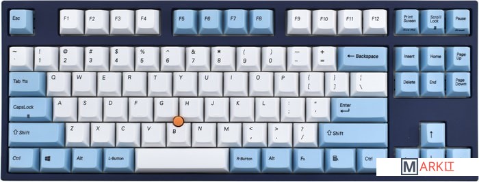 КЛАВИАТУРА БЕЗ КИРИЛЛИЦЫТип: тактильный Сила нажатия: 55 грамм (средние)Длина пути: 4 мм (2 мм до срабатывания)Данная модель представлена в тёмно-синем окрасе с белыми и светло-голубыми клавишами, расцветка выглядит свежо и воздушно. Клавиатура собрана добротно и монолитно, а сочетание высококачественных PBT клавиш с переключателями Cherry MX и звукопоглощающей подложки позволяет сделать печать на клавиатуре максимально тихой (насколько это возможно для механики). Mini-USB порт спрятан в центре под корпусом, а на самой клавиатуре имеются центральная и две боковые канавки под кабель.Уникальная для клавиатур Leopold фишка: теперь, если у вас нет под рукой мыши, клавиатура сможет взять её обязанности на себя. Указательный стик позволяет перемещать курсор, а для левой и правой кнопок мыши с обеих сторон пробела расположились специальные клавиши.Клавиатура поддерживает сочетание клавиш для регулировки громкости и управления музыкой, также имеется возможность переключения между 6KRO и NKRO.DIP-переключатели на задней панелиДают возможность поменять местами функции кнопок Ctrl и Caps Lock, Windows и Alt, Windows и Fn или отключить Windows.Звукопоглощающая подложкаПоглощает звуки при нажатии, делая процесс печати более тихим по сравнению с обычными механическими клавиатурами.Низкопрофильные клавиши Step-Sculpture2Данные клавиши заметно ниже и имеют оптимальный угол наклона, из-за чего, по отзывам, печатать приятнее и комфортнее, чем на более высоких клавишах.Клавиатура совместима с Mac OSFN-слой работает (кроме клавиш F6, F8, F9), а поменять местами клавиши-модификаторы можно в системных настройках. Проверено с MAC OS 10.13Функция Full N-key Rollover по USB (NKRO)Позволяет нажимать одновременно неограниченное количество клавиш. Для печати идеально подойдет как 6KRO, так и NKRO, независимо от вашей скорости. Для игр NKRO будет плюсом и неважно, нажимаете ли вы больше 6 кнопок или нет, поскольку, играя в любую игру, вы можете случайно нажать пару лишних клавиш и из-за этого клавиатура имеет шанс не среагировать на нажатие, которое вы хотели совершить изначально. Имеется возможность переключения между NKRO и 6KRO через FN сочетания.