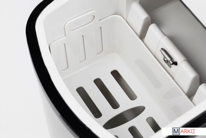 До 12 кг кубиков льда за 24 часаБыстрое приготовление (6-13 минут на порцию)Хорошая теплоизоляцияКорпус из нержавеющей сталиКомпрессорКрышка с смотровым окномИндикатор уровня водыАвтоматическое отключениеБольшой объем резервуара для воды: 1.7 л