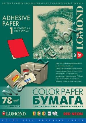 Самоклеящаяся бумага LOMOND (2010005) A4, 1 дел, красная, 50 листов Код: 5439